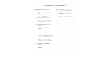 lifetime. Some of the many costs we incur include field maintenance, uniforms, game balls, equipment,